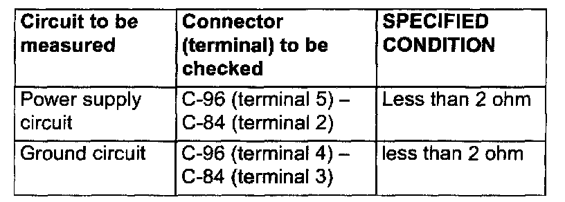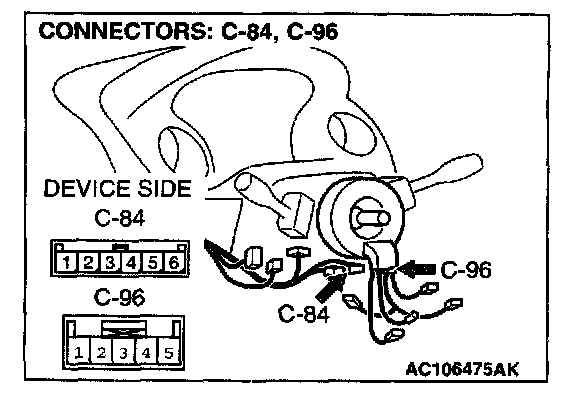 2. Measure the resistance at clock spring connectors C-96 and C-84.