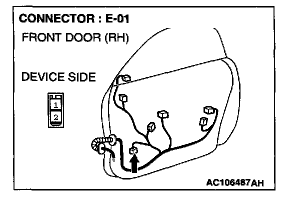 2. Check that the front door speaker (RH) generates noise when a five-volt voltage is applied on the front door speaker (RH) terminal.