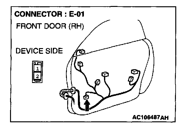 STEP 26. Check the wiring harness between front door speaker (RH) connector E-01 (terminal 1 and 2) and amplifier connector D-20 (terminal 15 and 16).