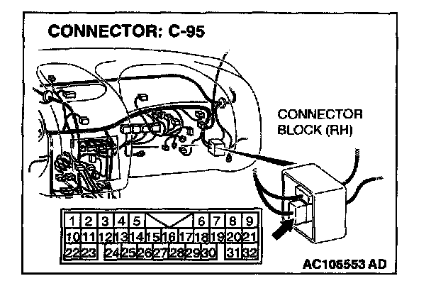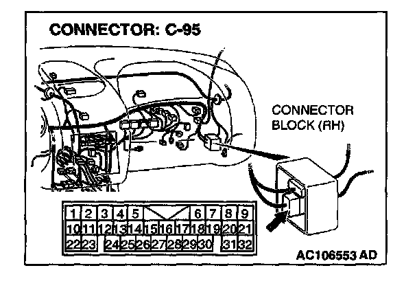 NOTE: After inspecting intermediate connectors C-95, inspect the wire. If intermediate connectors C-95 is damaged, repairer replace the wiring harness. Refer to Harness Connector Inspection.