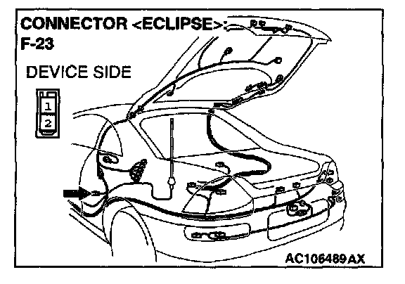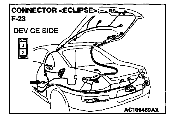 STEP 30. Check the wiring harness between rear speaker (LH) connector F-23 (terminal 1 and 2)