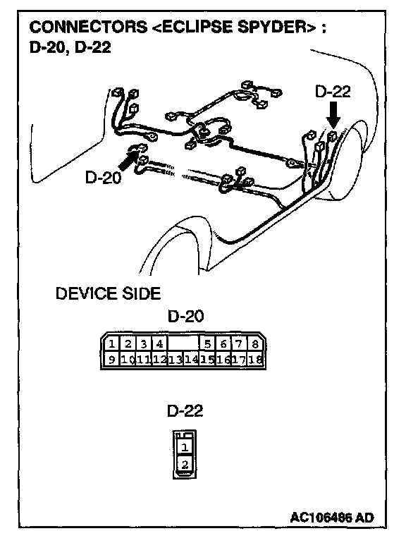 STEP 38. Check the wiring harness between woofer connector C-08 (terminal 1 and 2) and amplifier connector D-20 (terminal 4 and 13).