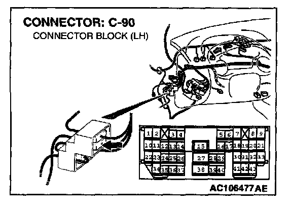 NOTE: After inspecting intermediate connectors C-90, inspect the wire. If intermediate connectors C-90 is damaged, repair or replace the wiring harness. Refer to Harness Connector Inspection.