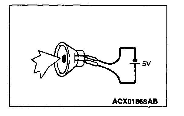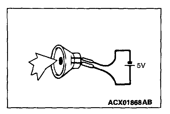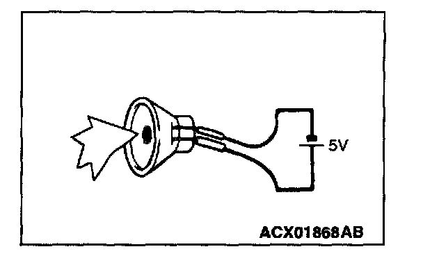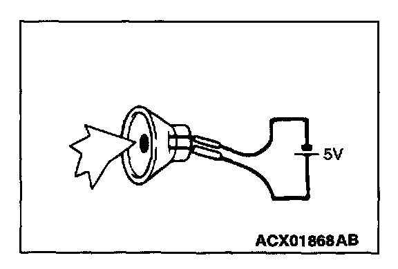 2. Check that the rear speaker (RH) generates noise when a five-volt voltage is applied on the rear speaker (RH) terminal.