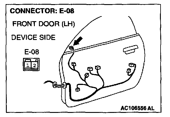 STEP 41. Check tweeter (LH) connector E-08 and amplifier connector D-20 for damage.