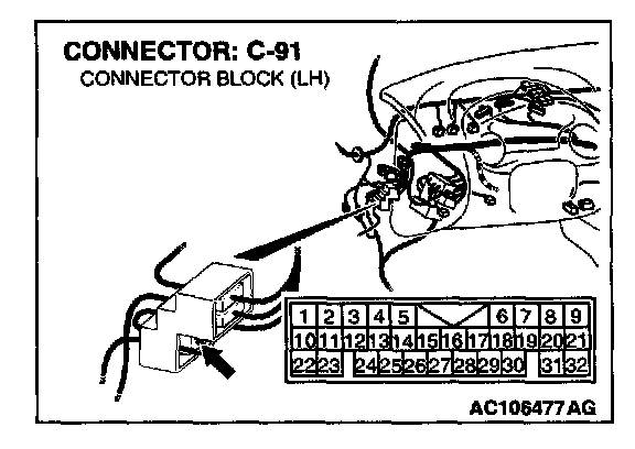 NOTE: After inspecting intermediate connectors C-91, inspect the wire. If intermediate connectors C-91 is damaged, repair or replace the wiring harness. Refer to Harness Connector Inspection.