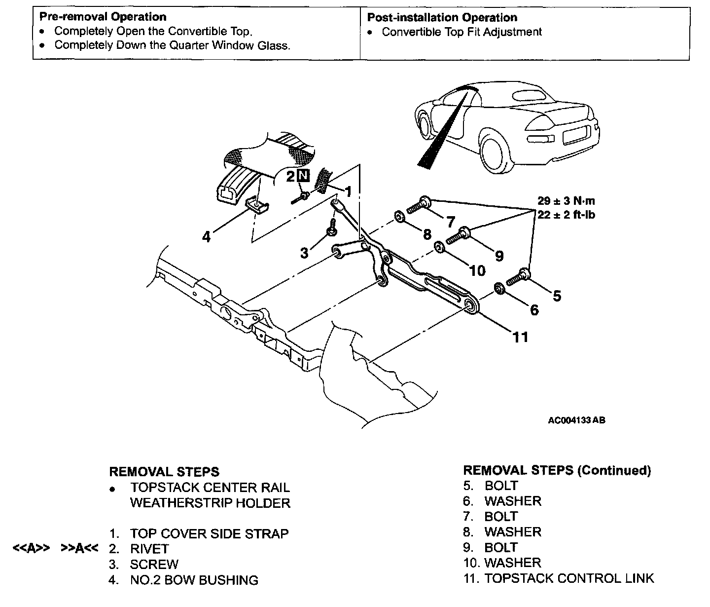 1. Insert the rivet [psi 4.8 mm (psi 0.19 inch)] into the top cover side strap and control link.