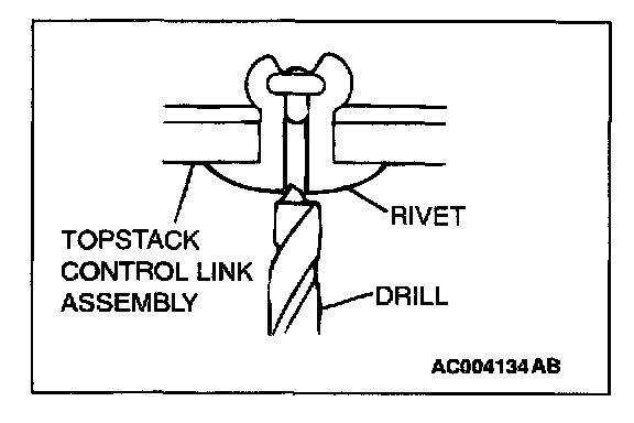 Use a drill [psi 4.0 - 4.5 mm (psi 0.16 - 0.18 inch)] to break the rivet by drilling a hole, and remove the rivet.