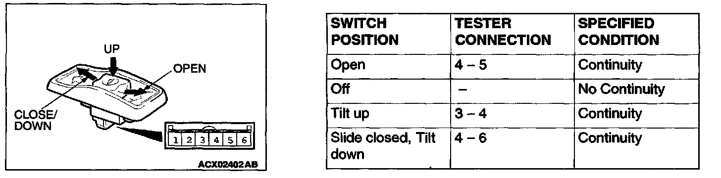 Sunroof Switch Continuity Check: