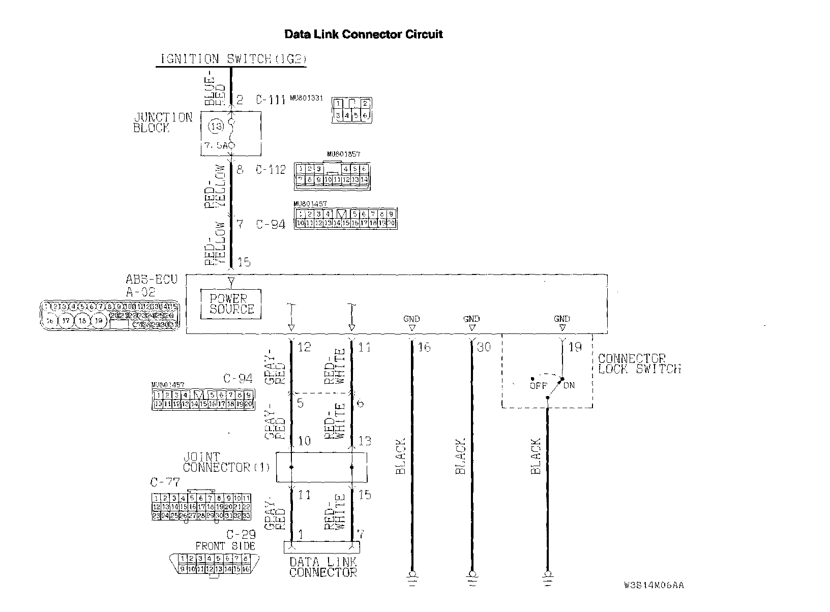 ^ The diagnostic output is made from the ABS-ECU (terminal 11) to the diagnostic output terminal (terminal 7) of the data link connector.