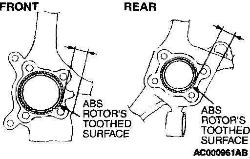 The clearance between the wheel speed sensor and the ABS rotor's toothed surface is not adjustable, but measure the distance between the sensor installation surface and the ABS rotor's toothed surface.