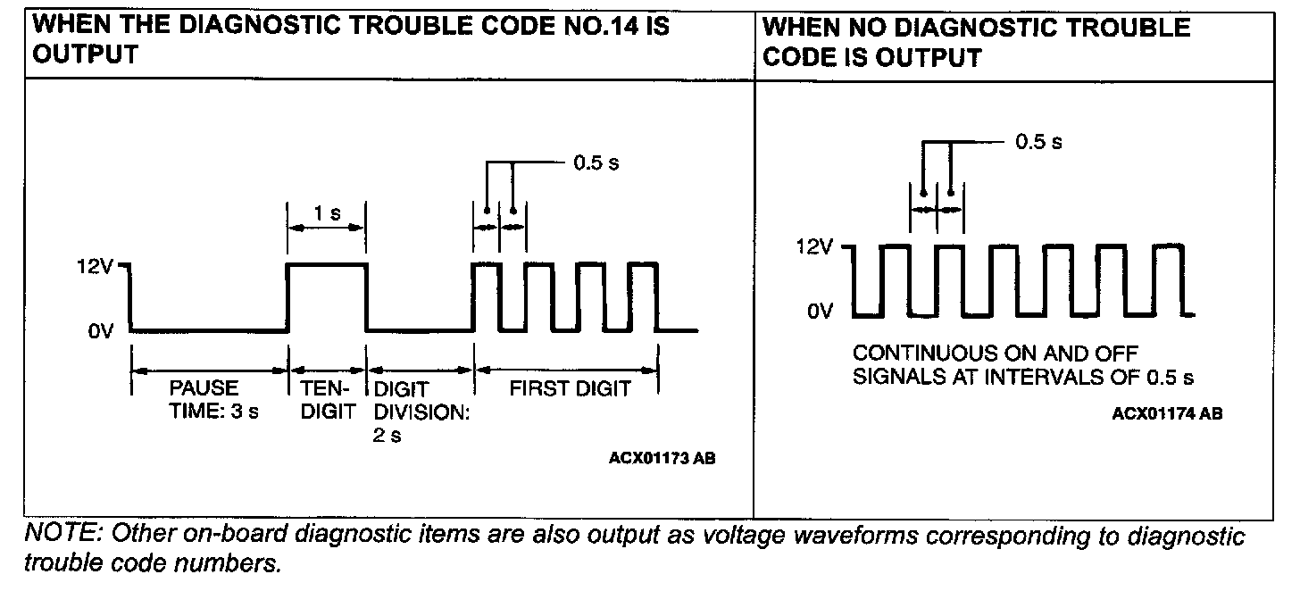 2. Read a diagnostic trouble code by observing the flash display pattern of the auto-cruise control indicator light in the combination meter.
