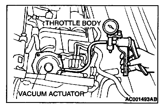 1. Disconnect the vacuum hose from the auto-cruise vacuum pump and connect a vacuum gauge to the vacuum pump.