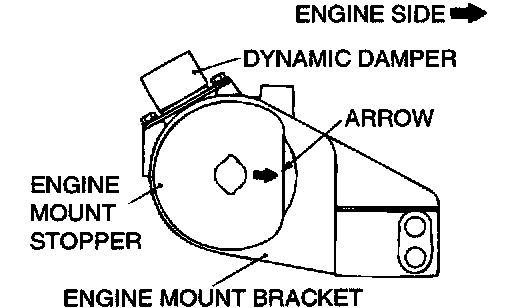 Clamp the engine mount stopper so that the arrow points in the direction as shown in the diagram.