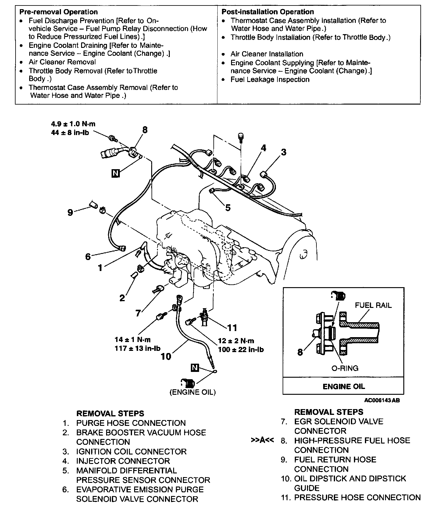 [[A]] FUEL RAIL, INJECTOR AND FUEL PRESSURE REGULATOR REMOVAL