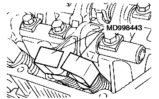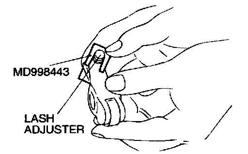 Set special tool MD998443 to prevent the lash adjuster coming free and falling to the floor.