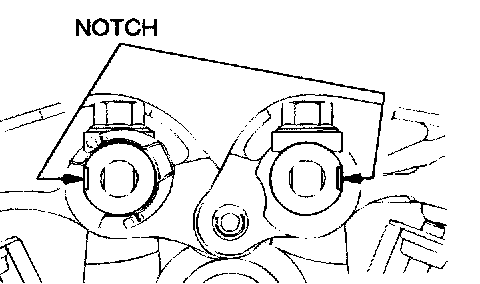 4. Make sure that the notch in the end of the rocker arm shaft is facing the direction as shown.