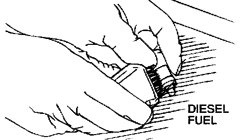 - Use only fresh diesel fuel to clean the lash adjusters.
