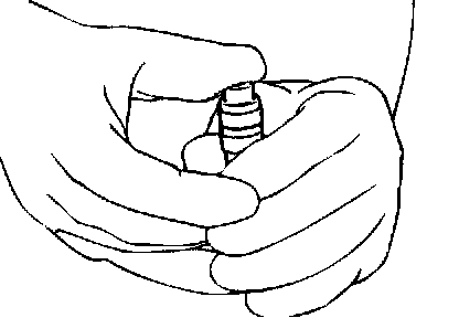 1. Prepare three containers and approximately 5 dm3 (30.5 quart) of diesel fuel. Into each container, pour enough diesel fuel to completely cover a lash adjuster when it is standing upright. Then, perform the following steps with each lash adjuster.