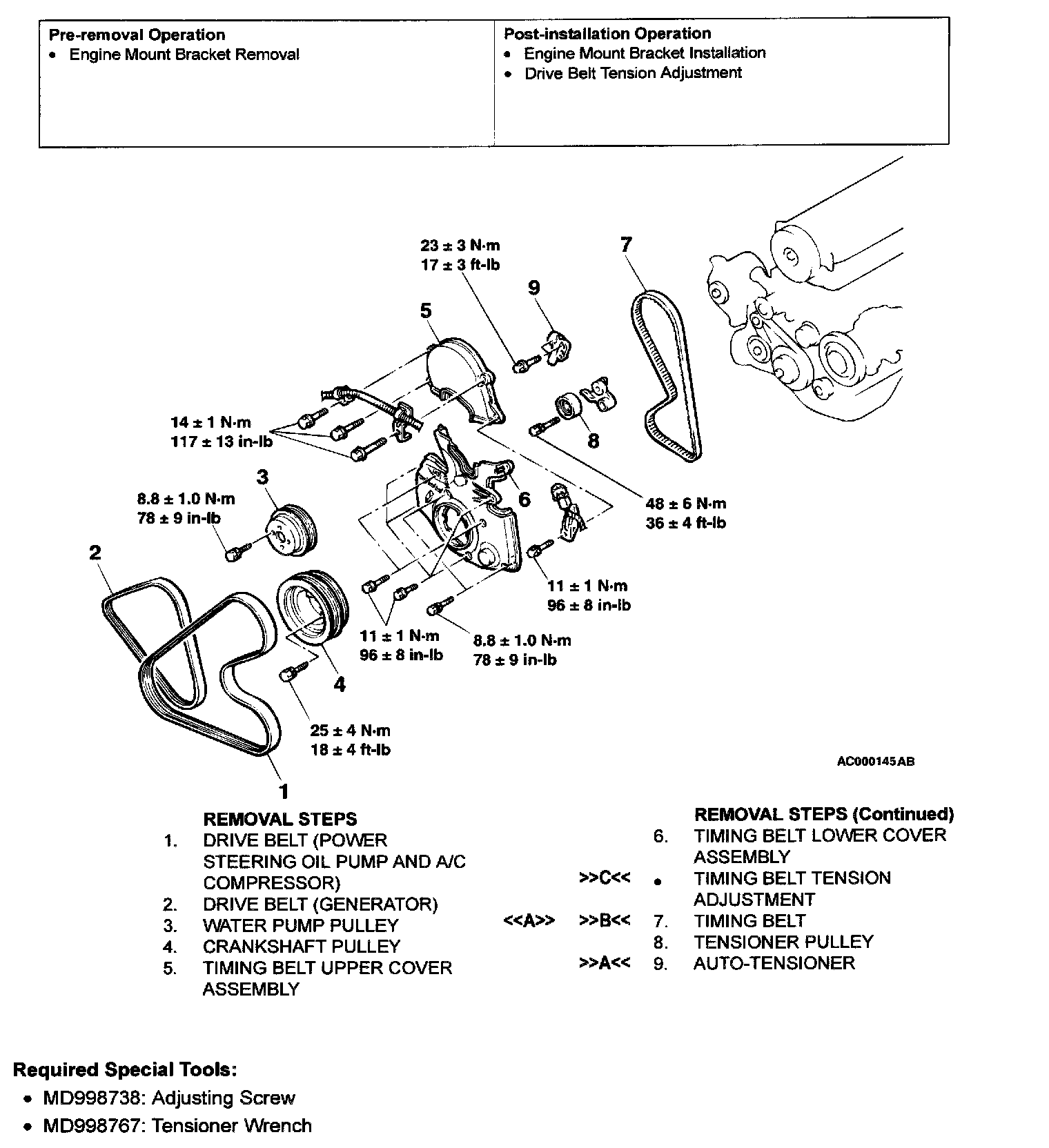 Timing belt tension torque: 3.5 Nm (31 inch lbs.)
