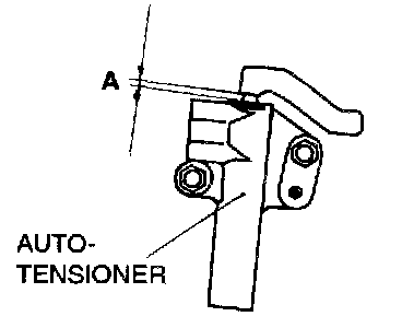 5. Turn the crankshaft two revolutions clockwise so that the timing marks are aligned. After leaving it for 15 minutes, measure the amount of protrusion of the auto-tensioner.
