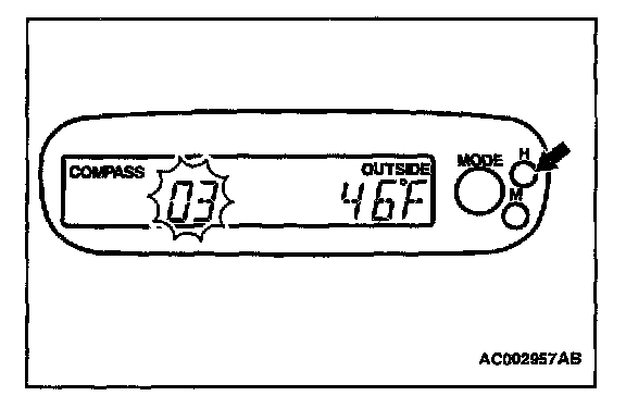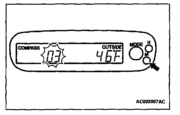 4. Pressing the "M" switch will exit zone entry mode. This area code number should remain in the battery off. If the compass deviates from the correct indication soon after repeated adjustment, have the compass checked at.