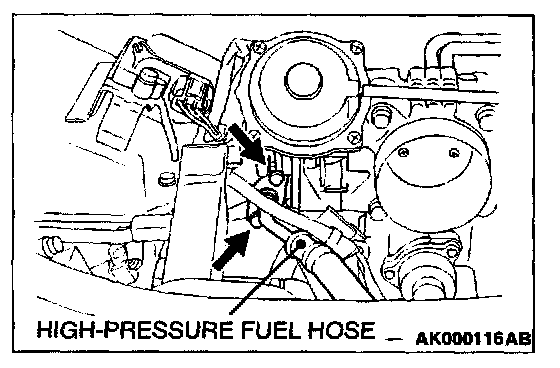 2. Disconnect the high-pressure fuel hose at the fuel rail side.