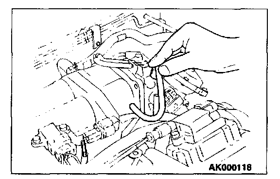 1. Remove the union joint and bolt from special tool MD998709 (adaptor hose) and instead attach special tool MD998742 (hose adaptor) to the adaptor hose.
