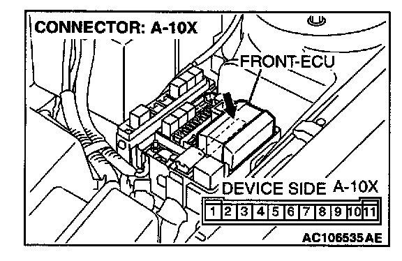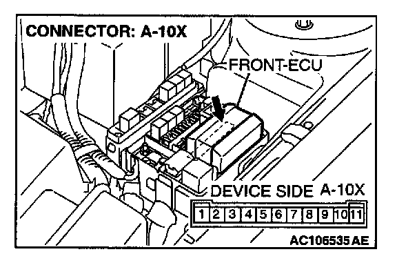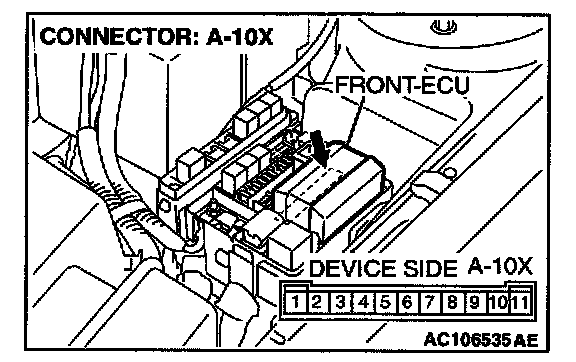 STEP 3. Check the front-ECU connector A-10X for damage.
