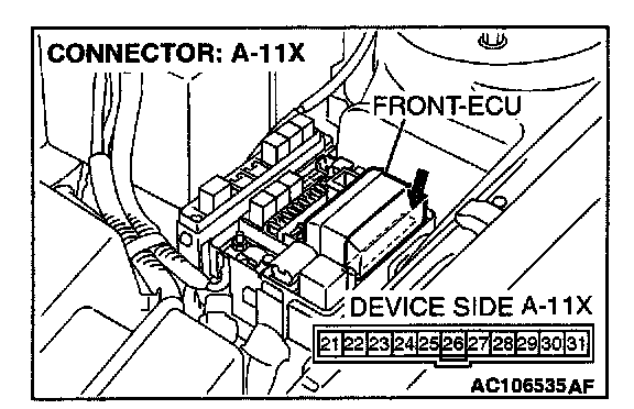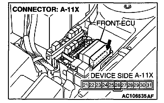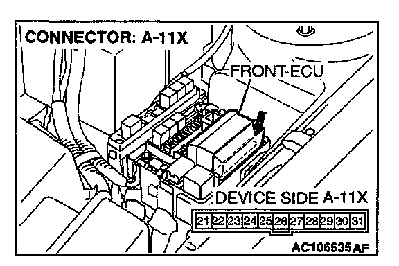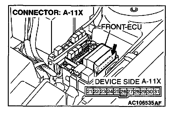 STEP 6. Check the front-ECU connector A-11X for damage.