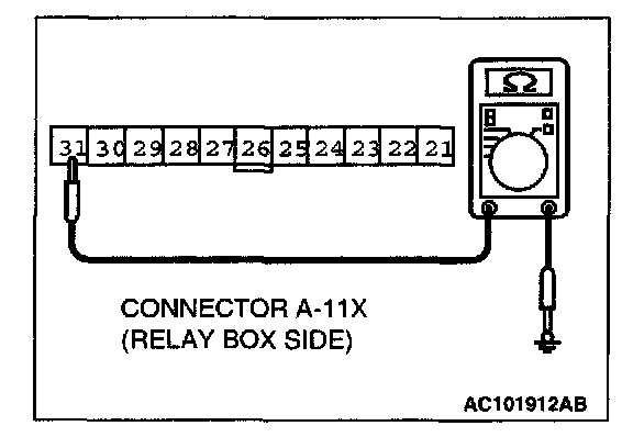 1. Disconnect front-ECU connector A-11X, and measure at the relay box side.