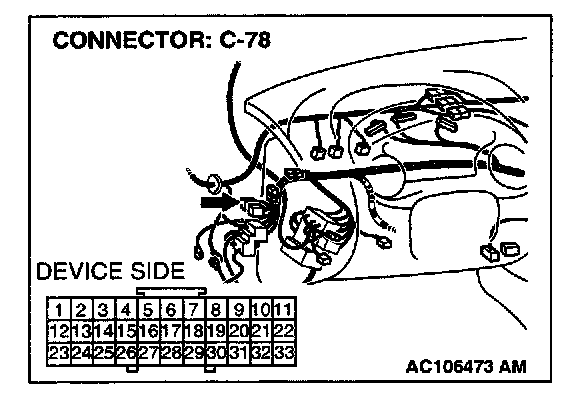 NOTE: Also check joint connector C-78 and intermediate connector C-89. If joint connector C-78 or intermediate connectors C-89 is damaged, repair or replace the connector as described in Harness Connector Inspection.
