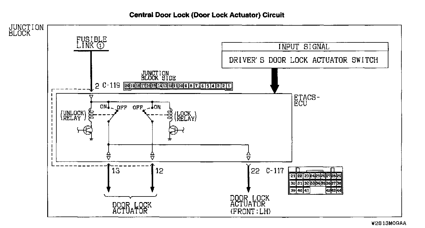 Central Door Locking System: All The Doors Do Not Lock With Just The Driver's Or Front Passenger's Inside Lock Knob Operation.Central Door Lock (Door Lock Actuator) Circuit: