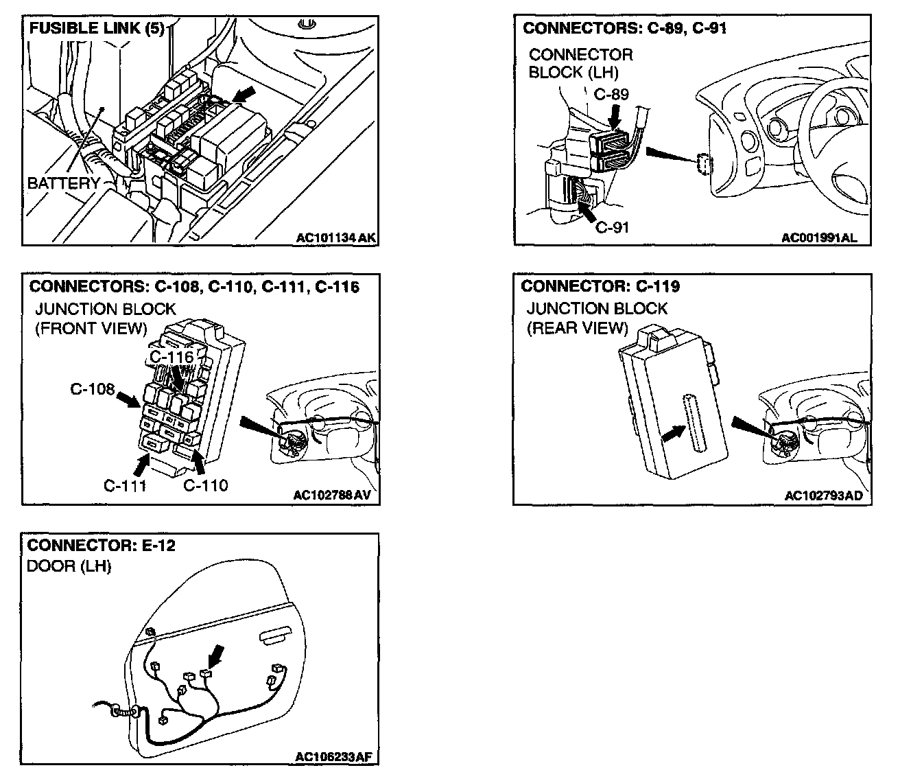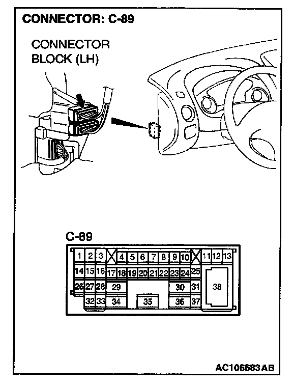 NOTE: Also check junction block connector C-110 and intermediate connector C-89. If junction block connector C-110 and intermediate connectors C-89 is damaged, repair or replace the connector as described in Harness Connector Inspection.