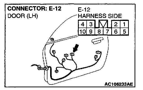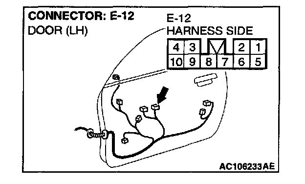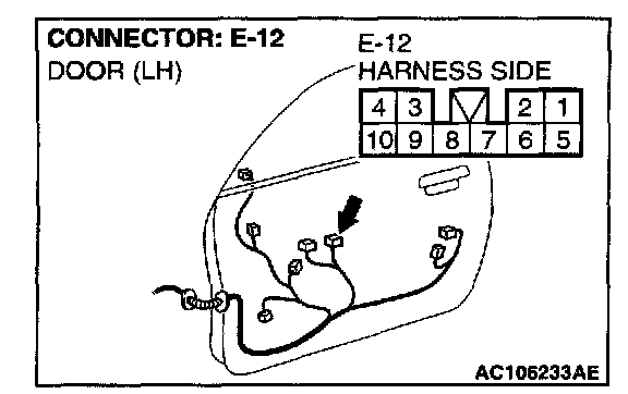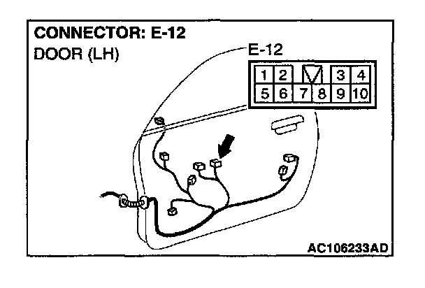 STEP 10. Check at power window main switch connector E-12 in order to check the power window main switch ground circuit.