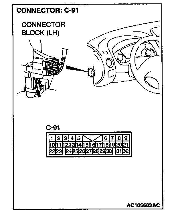 NOTE: Also check intermediate connector C-91. If intermediate connectors C-91 is damaged, repair or replace the connector as described in Harness Connector Inspection.