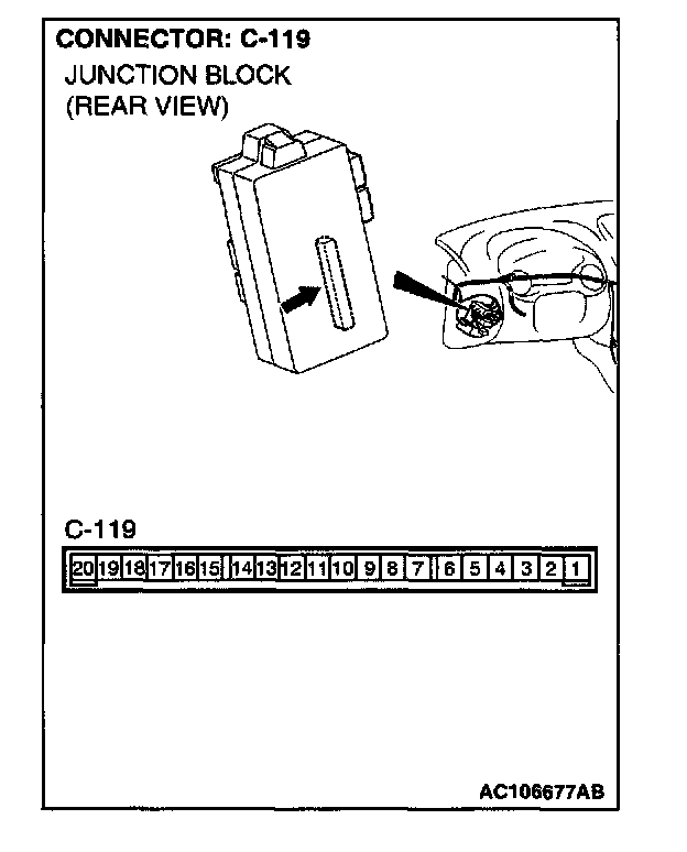 STEP 14. Check power window relay connector C-116 and ETACS-ECU connector C-119 for damage.
