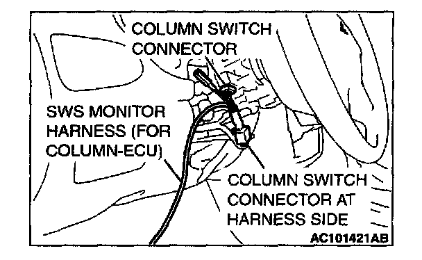 2. Connect SWS Monitor Kit MB991862 to the column switch connector.