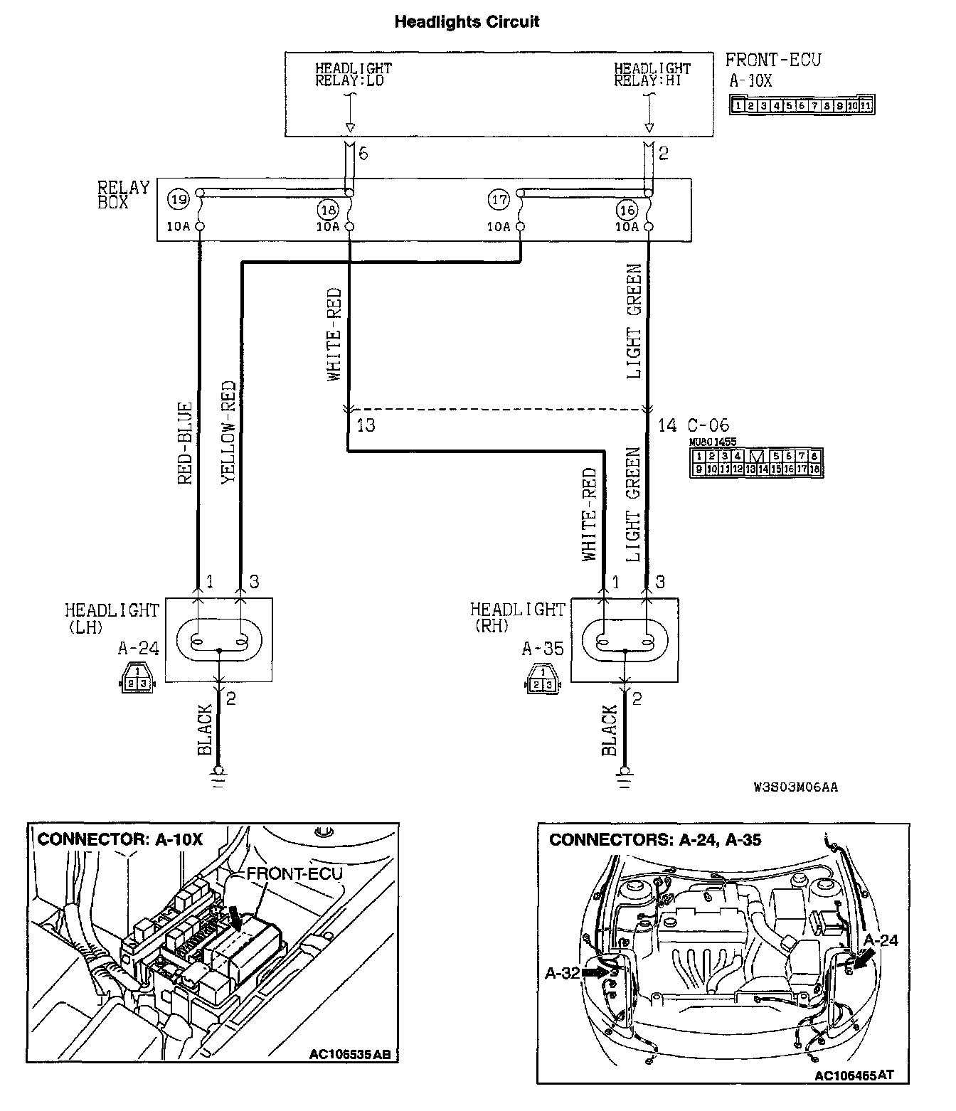 Q: Are headlight (RH) connector A-35 and front-ECU connector A-10X in good condition?