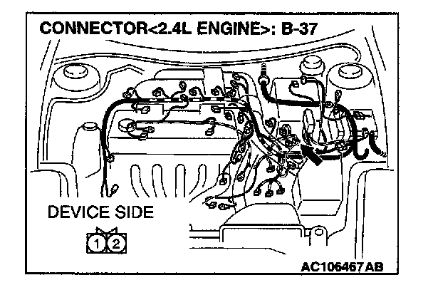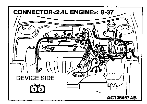 1. Disconnect backup light switch connector B-37, and measure at the wiring harness side.