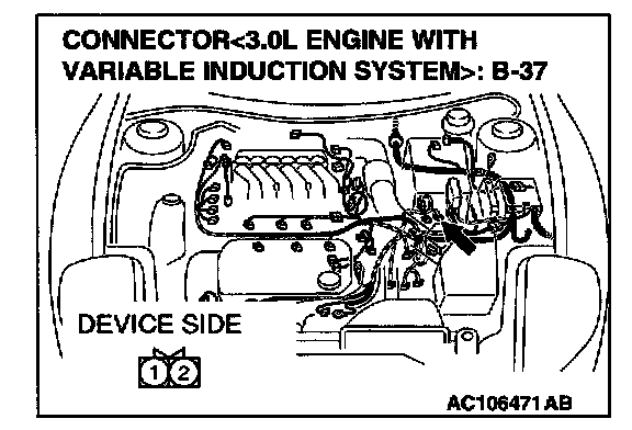 STEP 2. Check at backup light switch connector B-37 in order to check the ignition switch (IG1) line of the power supply to the backup light switch.