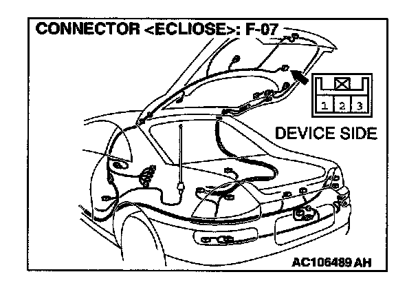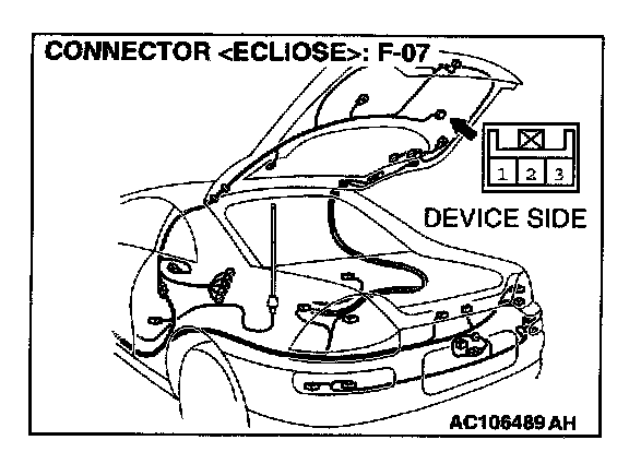 STEP 4. Check rear wiper motor connector F-07 for damage.