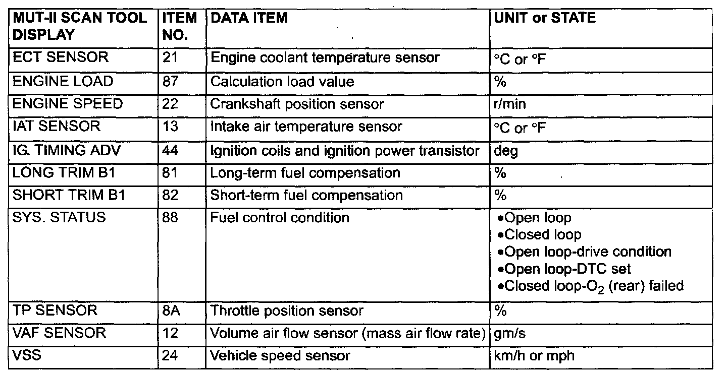 NOTE: As for diagnostic trouble code P1603, "freeze frame" data is not memorized.