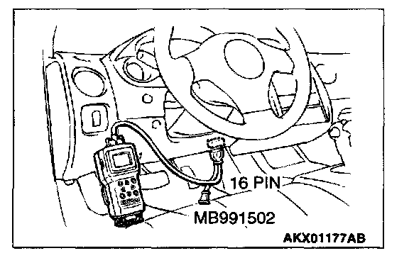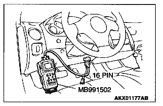 1. Connect scan tool MB991502 to the data link connector.