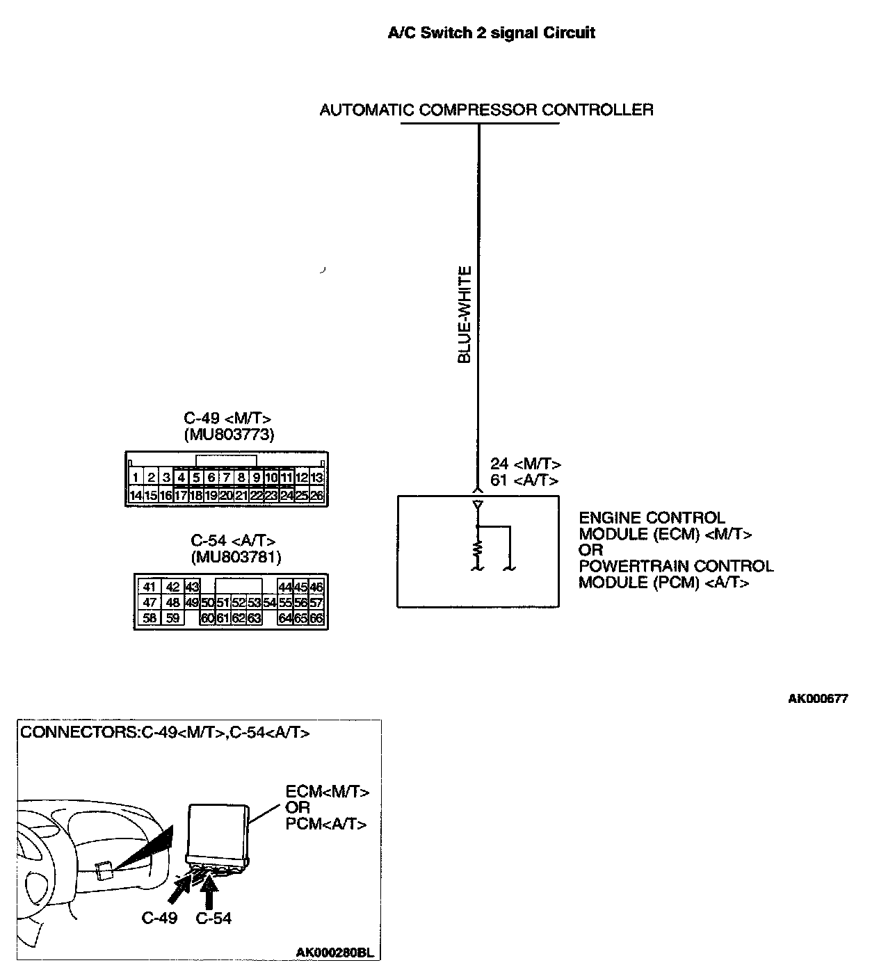 - The automatic compressor-ECU detects how the air conditioning is applying load to the engine, and converts the information to a voltage signal (High voltage = low load, Low voltage = high load). This voltage signal is called "A/C switch 2 signal". The ECM