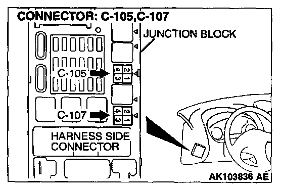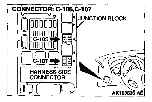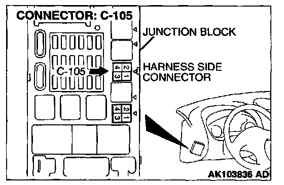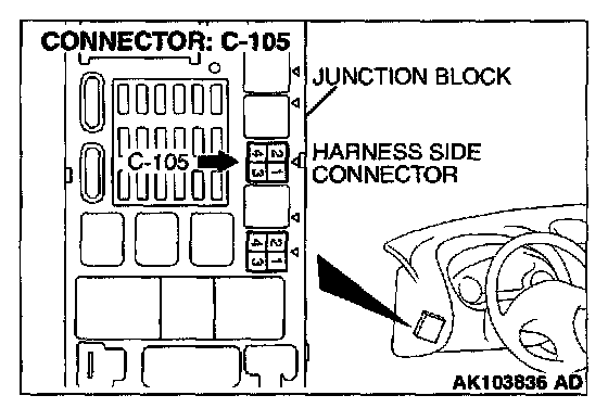 1. Disconnect the connector C-105 and measure at the harness side.