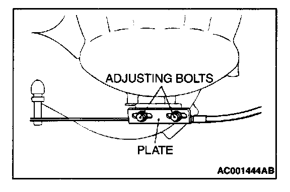 2. Move the plate until the inner cable play is at the standard value, and then tighten the adjusting bolt.
