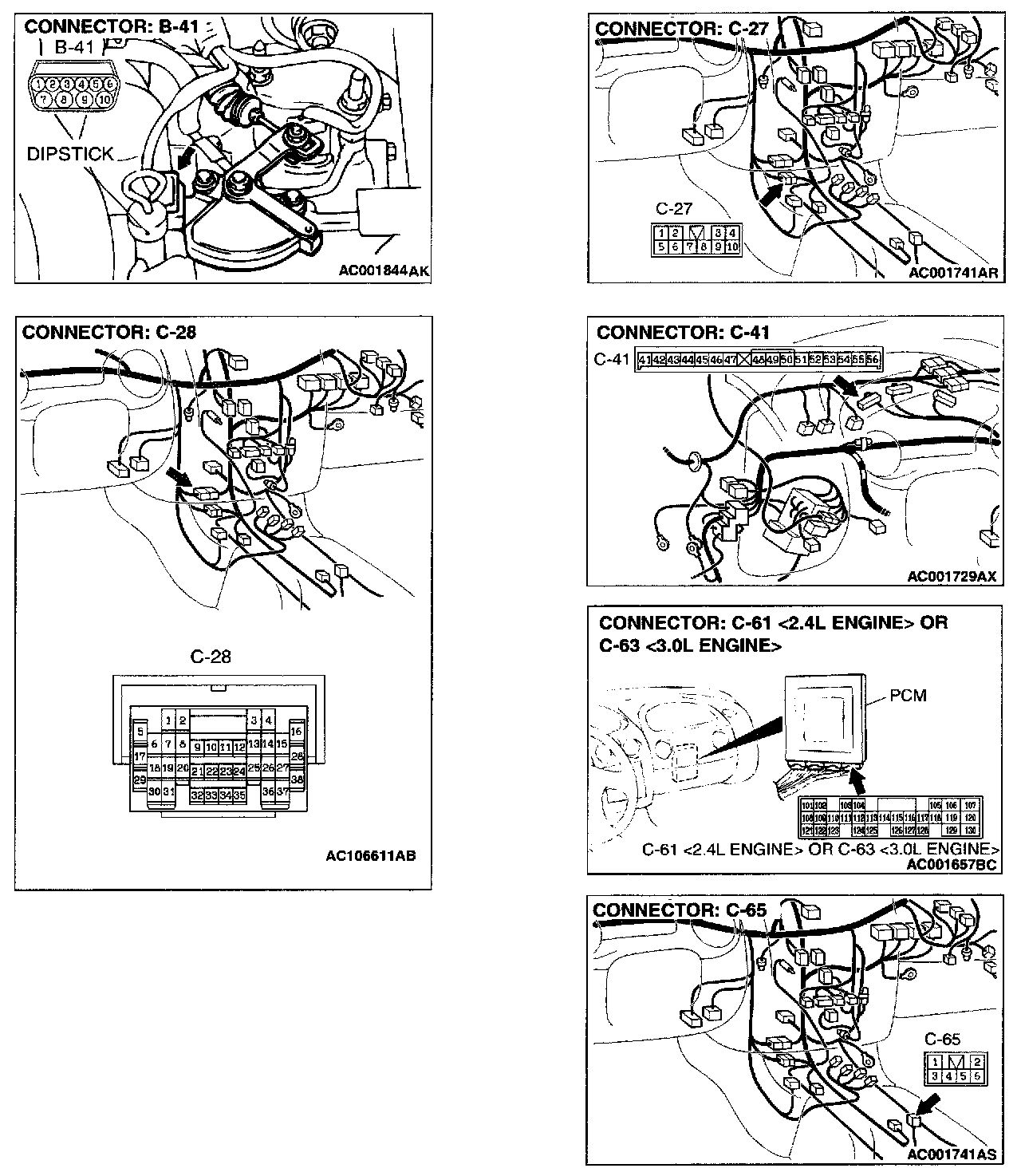 1) Do not disconnect connector C-61 <2.4L Engine> or C-63 <3.0L Engine>.
