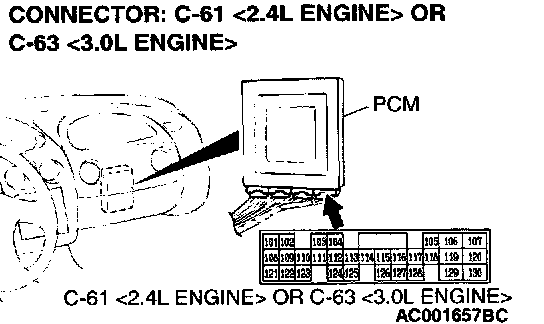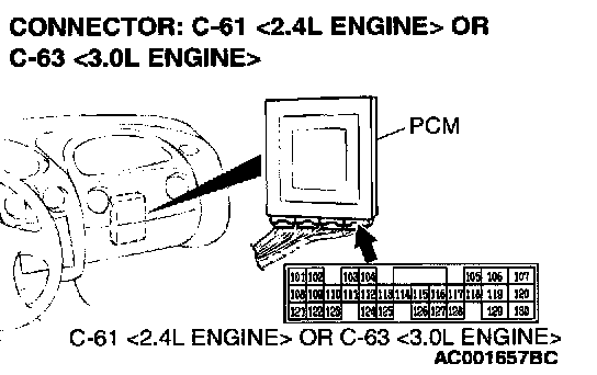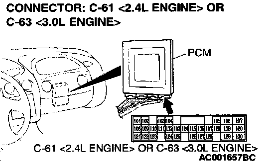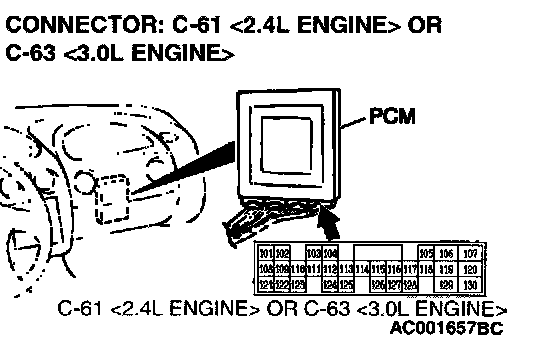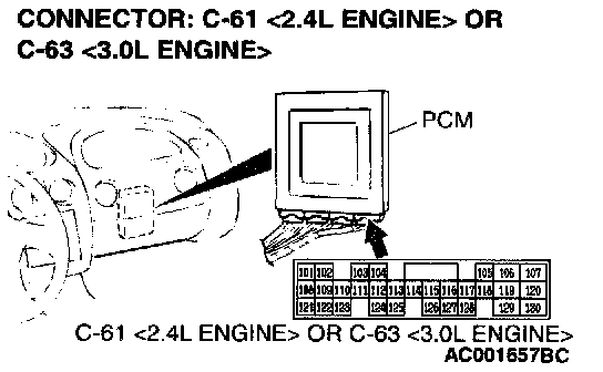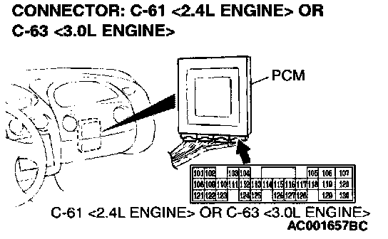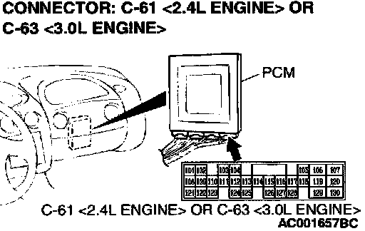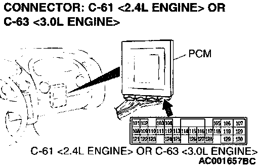 STEP 13. Check connector C-61 <2.4L Engine> or C-63 c3.0L Engine> at PCM connector for damage.