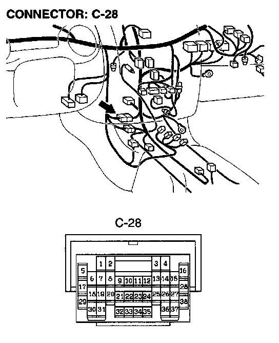 STEP 18. Check connectors C-28 at intermediate connector and C-112 at junction block for damage.